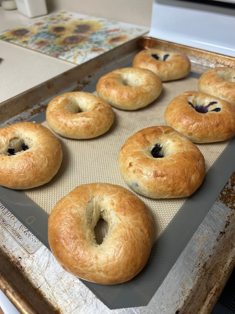 - Place on a baking mat on your baking tray to prevent the bagels from sticking to the pan. Bake them for 25 minutes.